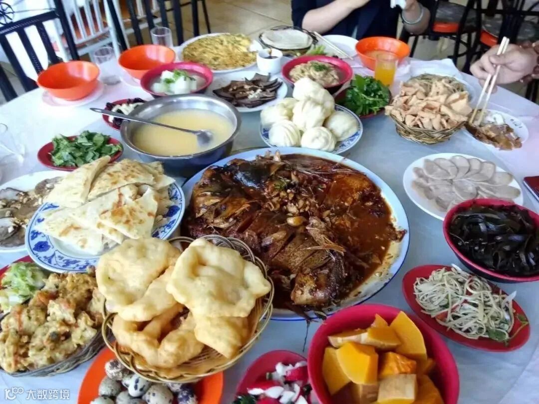 春饼宴配菜丰富,加起来有二十多道:梅菜扣肉、酱肘子、粉肠、松肉、拌苦菊、拌油麦菜等。薄如蝉翼、白如翠玉的春饼,卷上肘子肉、酱肉、豆芽、葱丝等,咬上一口,体会到的是食物带来的满满的幸福感。