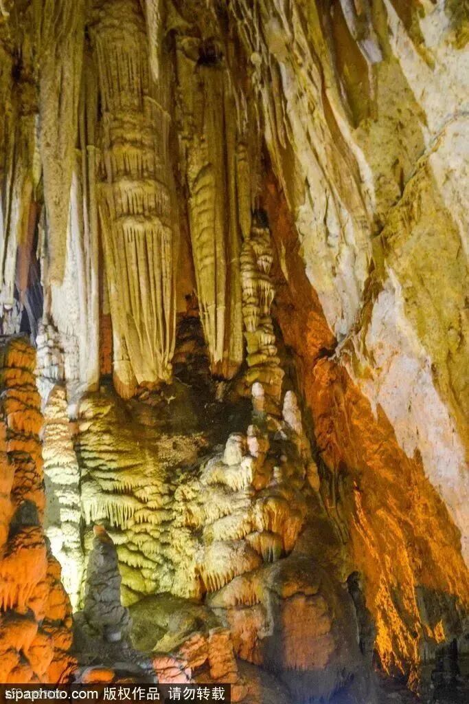 石花洞一层、二层现已全部开放,三层、四层也已部分对外开放,拥有150多处主要景观,游览长度达2500米。