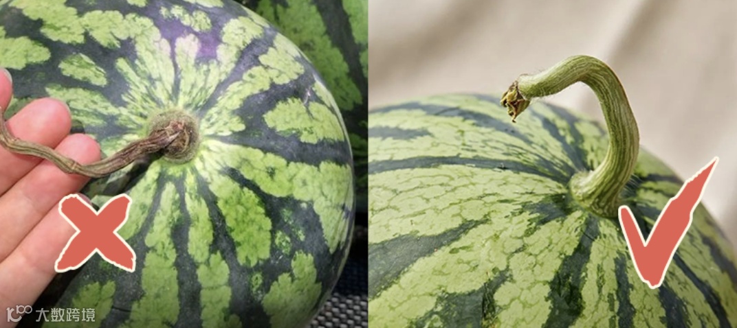 3. 藤蔓新鲜。选带有绿色的藤蔓的西瓜;