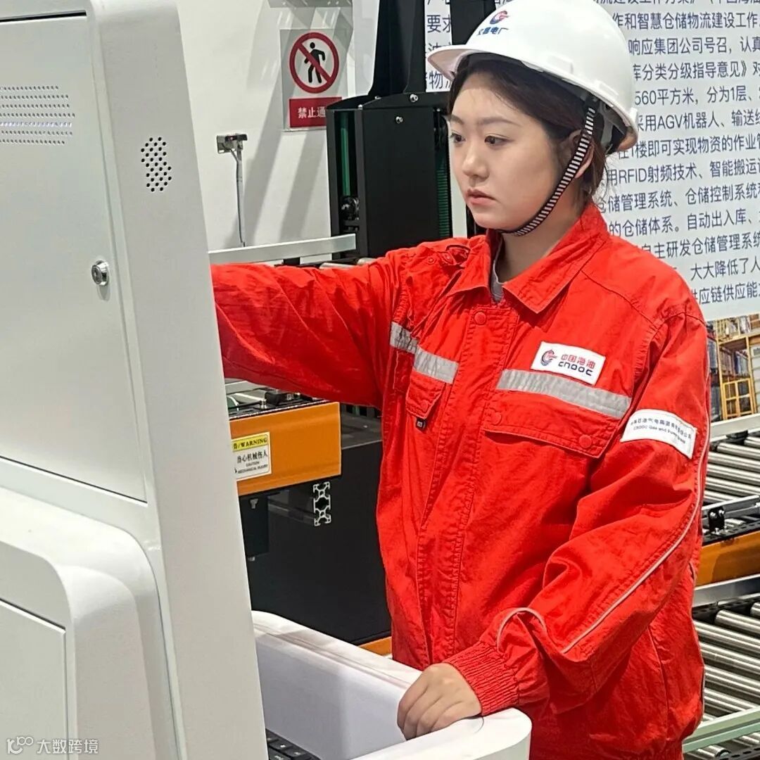 在重型物资分拣区,“大力士”智能堆垛机成为高效作业的核心力量。贴上RFID(射频识别)标签的物资被放入银色的物料笼,经智能称台称重后,由机械臂移送至入库台。仓管员在 WMS 系统下达指令,高达10米的智能堆垛机即可通过红外感应,精准定位货物位置,并以机械臂稳稳托起近1吨重的大型货箱,沿预定轨道完成入库操作。