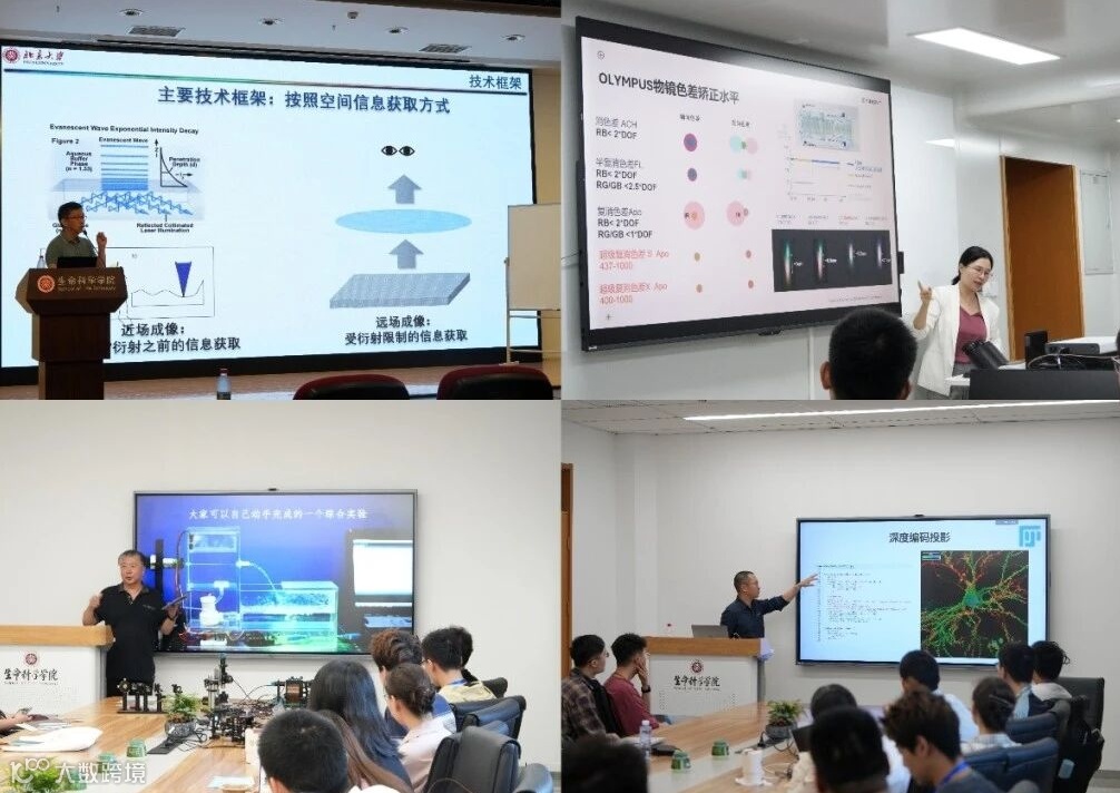 2025年8月25日至30日,锐光凯奇参与了由北京大学生命科学学院与国家蛋白质科学研究设施(北京)北大分中心光学成像平台主办的“第三期生物显微成像培训班”。本次培训以“动手搭建”为核心,聚焦共聚焦与超分辨显微系统的搭建与调试,其中超分辨整个系统的机械件由锐光提供,图4左下图片是锐光凯奇专家参与讲座交流。