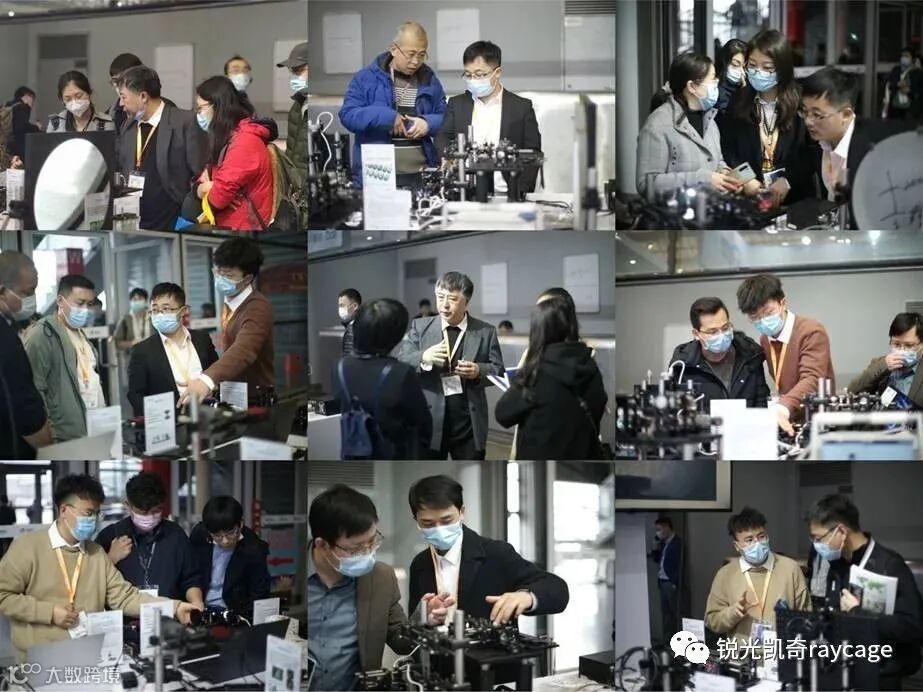 2021年的展会上,首次参与的锐光凯奇展出了使用新一代多轴笼式结构搭建的集成化系统,例如:双物镜成像系统-光镊、可以大角度旋转的成像系统、五物镜的光片显微镜概念机、可以任意更换物镜的光片显微镜概念机等,非常创新的以单物镜实现透射和反射照明的成像系统获得了不少观众的关注:
