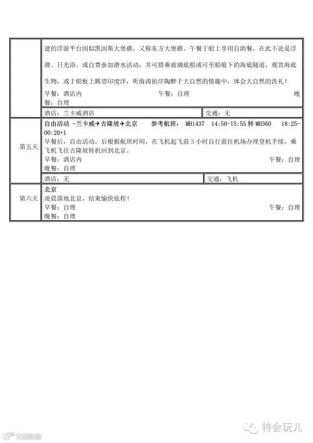 参考航班: 北京-吉隆坡-兰卡威 MH361 02:30-08:55转 MH1432 12:00-13:00 兰卡威-吉隆坡-北京 -