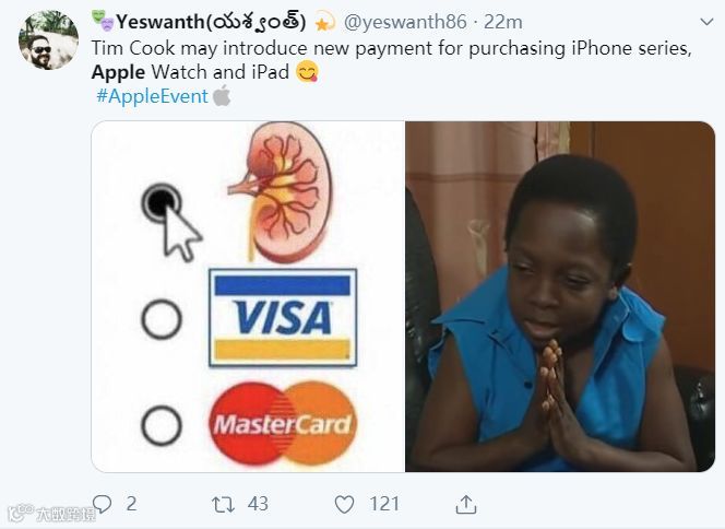 我:我真想同时拥有剃须刀和iPhone 11 苹果:我懂了(Twitter截图)