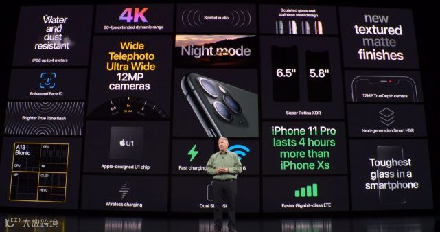 续航方面,iPhone 11 Pro比iPhone XS续航多4个小时,iPhone 11 Pro Max比XS高5小时续航。
