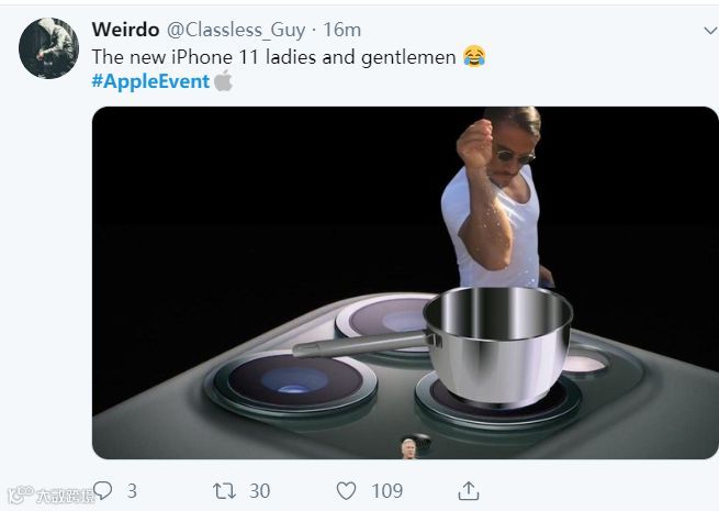 我觉得苹果设计团队在设计iPhone 11的时候肯定喝大了(Twitter截图)