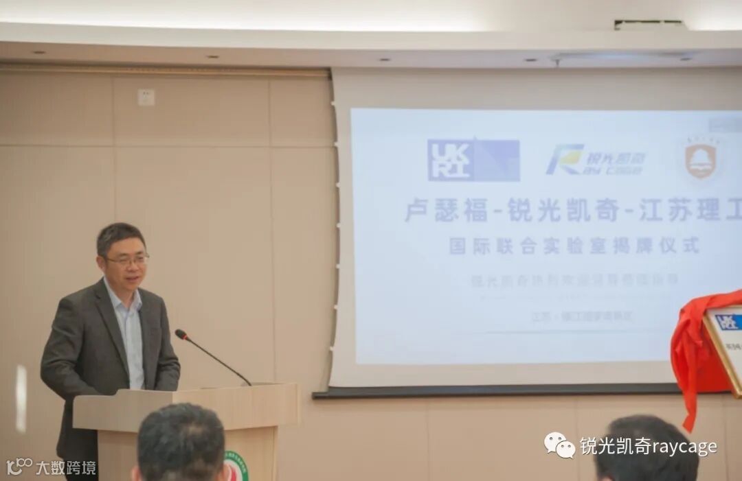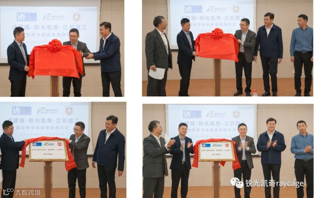 随后,在锐光凯奇董事长和江苏理工王处长的陪同下,陆校长、徐主任、朱局长一同为国际联合实验室揭牌,图7: