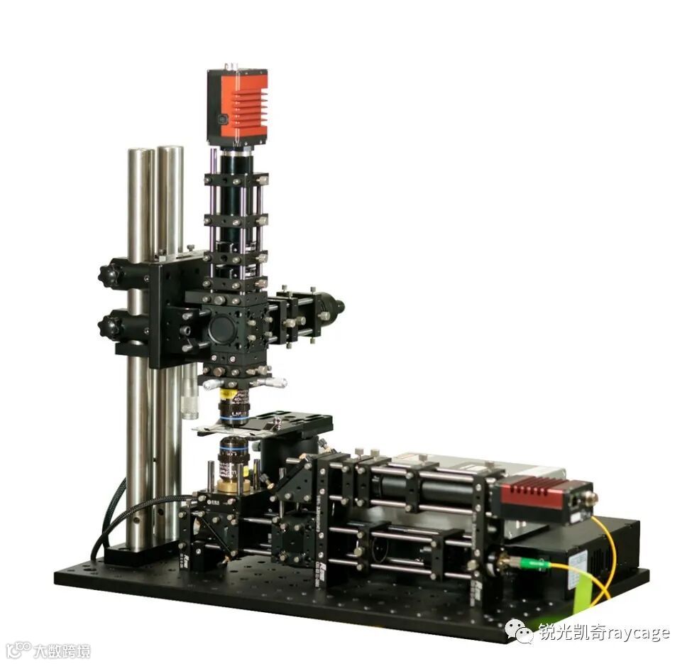 锐光独家专利技术的垂直支架系统可以手动调整,也可以精确的使用步进电机控制移动,现场得到了用户的认可,会议结束还没有返回公司,已经有客户下单采购。在给客户送货的同时,锐光的工程师还使用这个结构搭建的光镊演示给客户,图8: