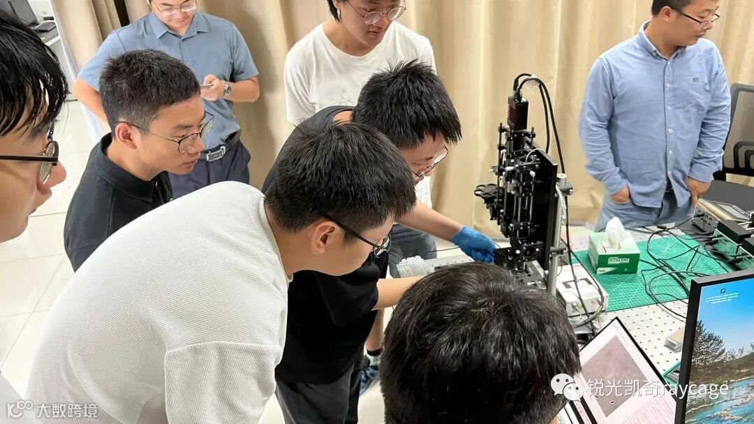 工程师们现场通过集成系统案例,向参会的老师们展示讲解了锐光凯奇的集成化技术—通过使用公司自主创新的新一代多轴笼式结构光学机械件,搭建非标定制化的光学系统,获得在场老师们的认可。