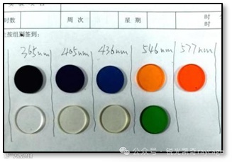 为了精确地定量研究特定频率入射光光强 Iν 与最小反向遏制电压Us实验关系,我们首先对光电效应实验仪高压汞灯辐射出的365nm,405nm,436nm,546nm,577nm这五个不同频率的入射光,在实验室找到同型号的光电效应实验备用仪器,先拆解下三套滤镜盘,再拆解出每个滤镜盘上的五组不同频率的滤色镜,利用光纤光谱仪(Ocean Optics SpectreSuite)进行了分色光的逐项组合测定。