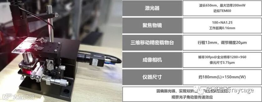 西安交通大学雷铭教授课题组长期进行先进光学成像和光场调控与光镊技术研究,在《Reports on Progress inPhysics》、《Physical Review Letters》等国际刊物上发表论文100余篇,授权中国发明专利12项,授权美国发明专利1项,开发了多套光镊设备。如图4所示是新开发的微型单光镊设备,该仪器能够实现几百纳米至十几微米尺寸的微粒的三维稳定捕获与成像,仅需简单调节即可使用,稳定性高,特别适合于本科生教学的光力效应演示。