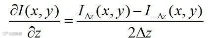 如果已知某一时刻物镜焦平面上的光强I(x,y)分布及其沿光轴方向z的导数,则可以求得该平面上的位相分布 。但是由于强度对光轴的导数无法直接测量,往往用差分形式来近似: