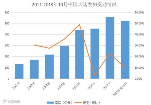 图表:2011-2018年前10月中国大陆票房变动情况