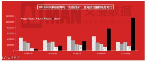 图表:2018年1-5月蔡徐坤与归国四子全网热议指数对比