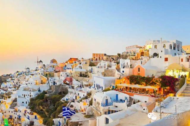 蓝白色的蜜月圣地--圣托里尼岛; -