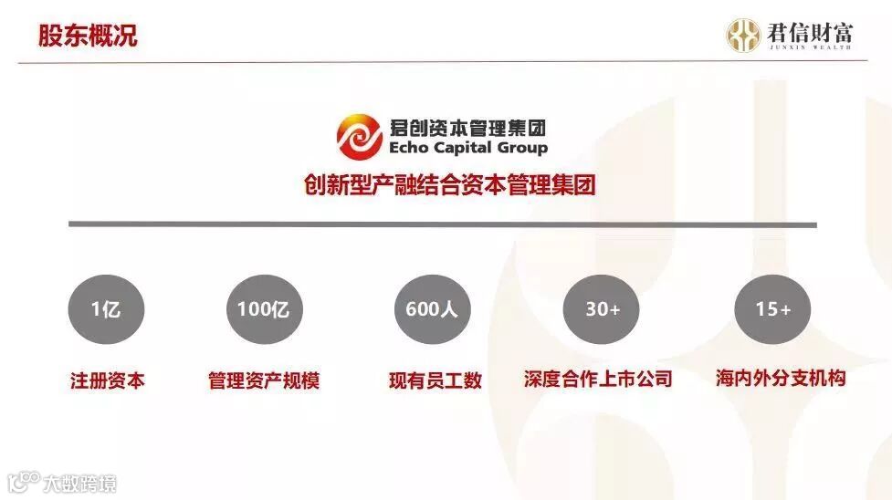 据了解,君信财富是由一批资深的财富管理从业人员成立,致力于打造财富管理界的华为的创新平台,采用合伙人机制,从公司成立之初就预设了40%股权免费分配给员工。卓越的机制吸引了大量优秀人才,目前,君信财富在全国范围内已经拥有北京、上海、深圳、济南、西安、重庆、兰州等多家分支机构,员工过百人。