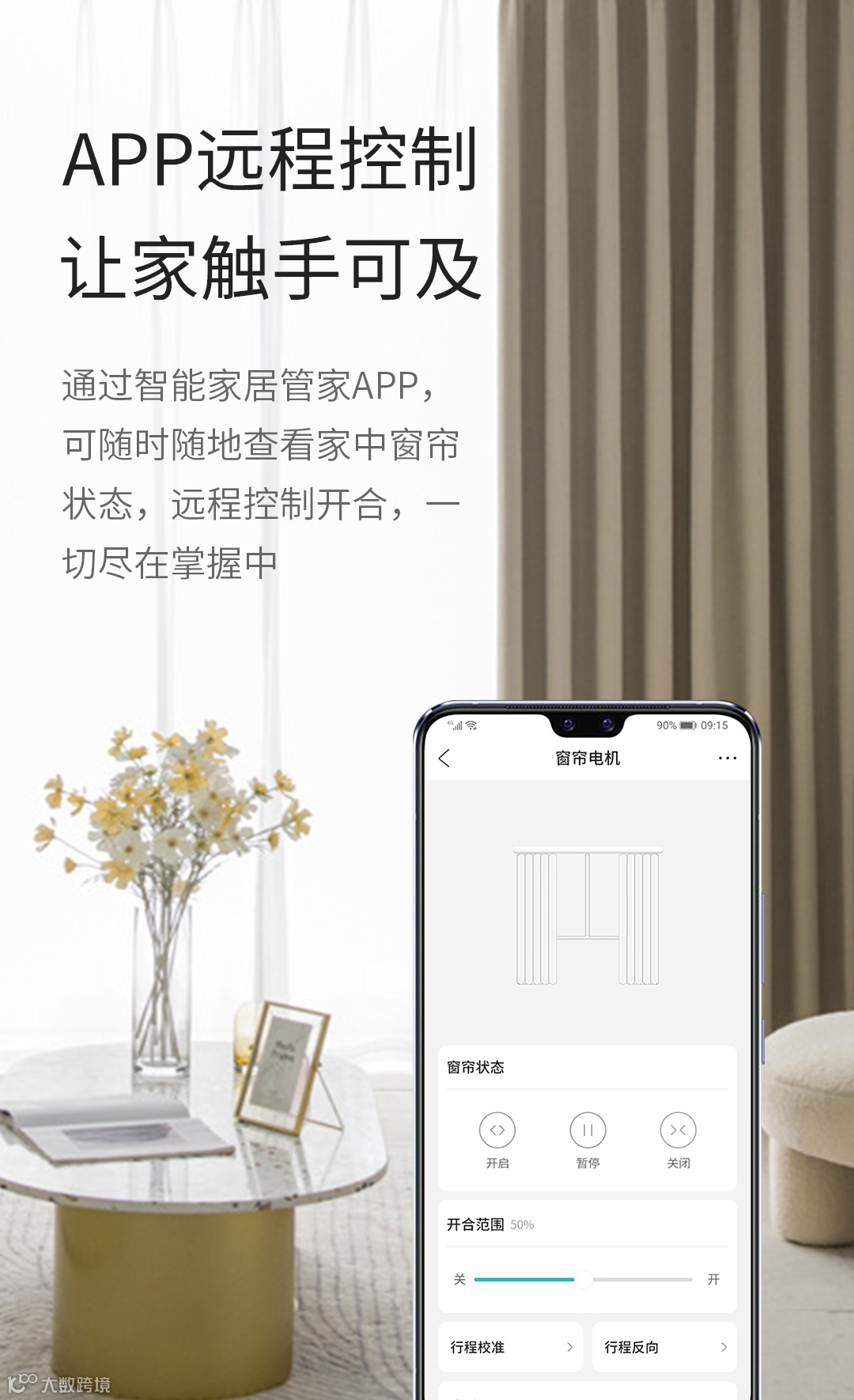 支持多种语音助手控制,不管你在家里什么位置,只需发出指令“打开窗帘”“关闭窗帘”,窗帘闻声而动,根据你的需要自动开合,让生活更游刃有余。