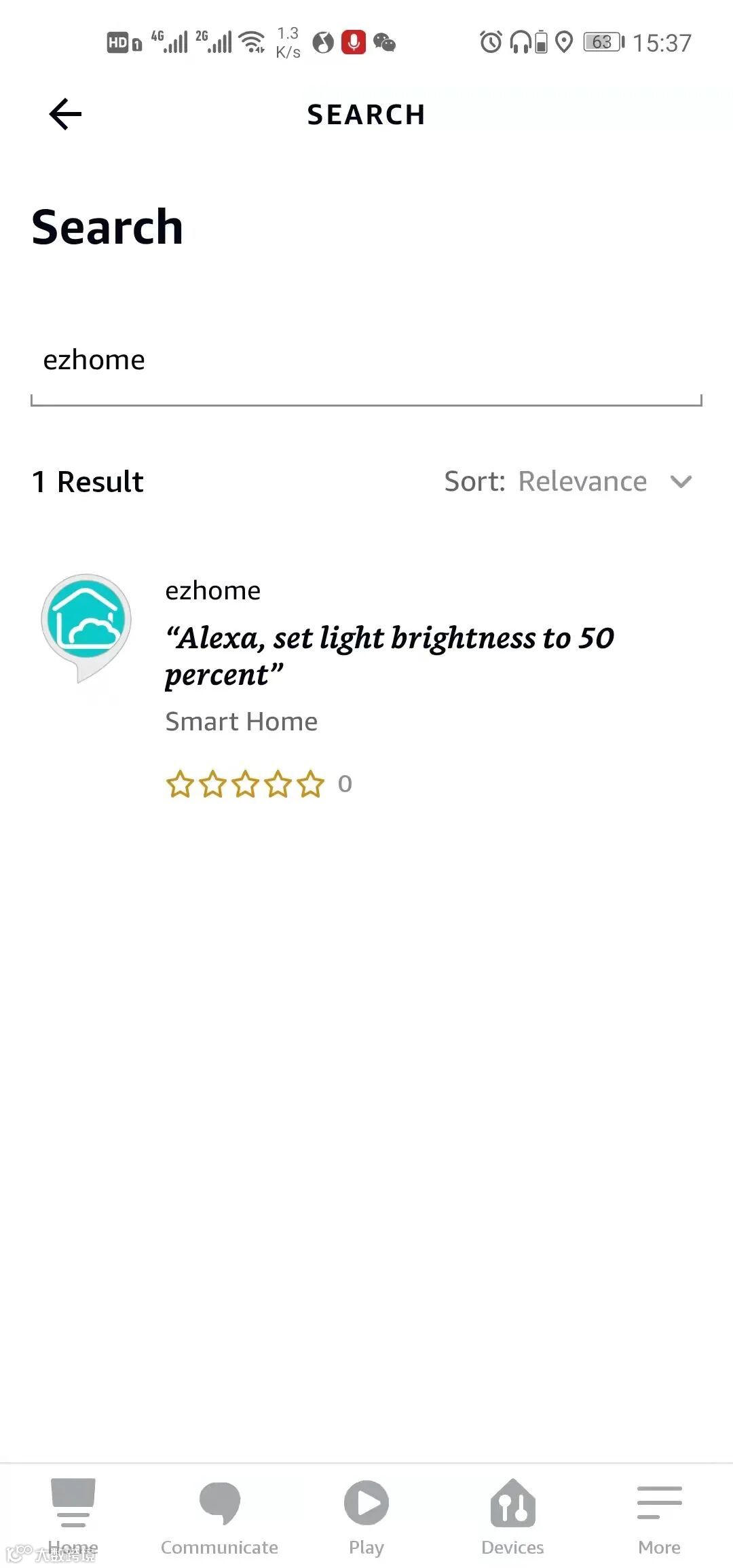 1、 打开“Amazon Alexa”APP,在首页搜索“ezhome”跳转至本页面
