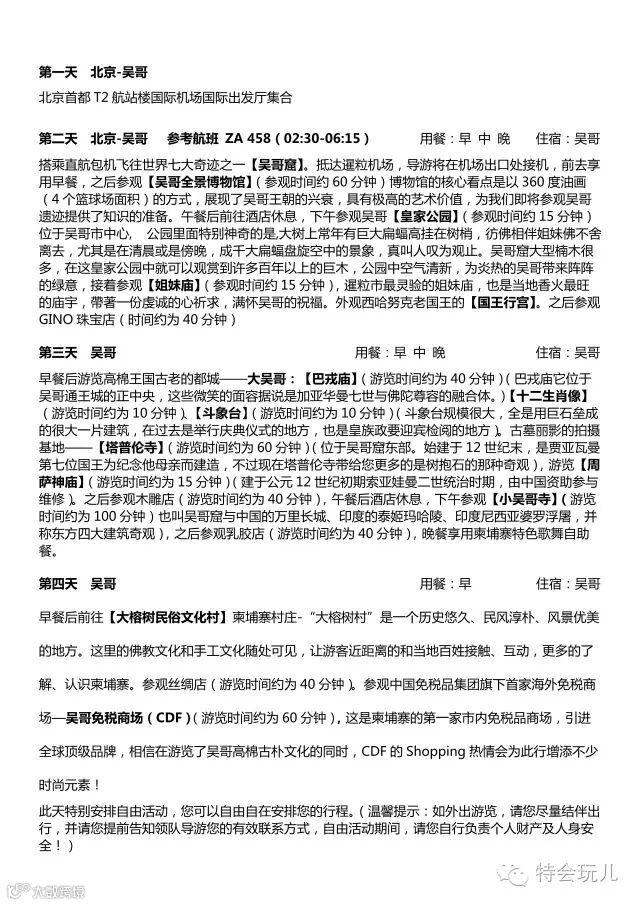 个人消费、行程以外的景点门票;医疗费以及交通延 阻罢工及其人力不可抗拒的因素所导致的额外费用。