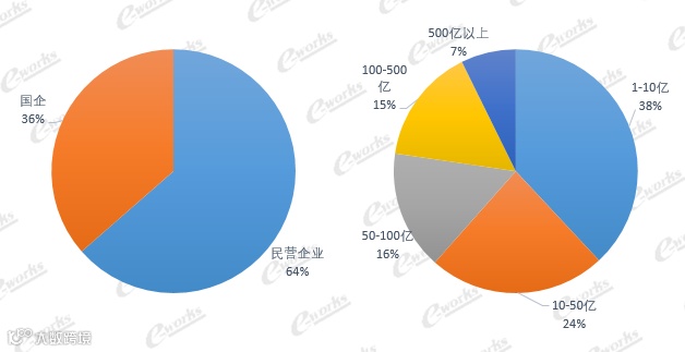 从企业类型来看,民营企业占比64%,国企占比36%。企业规模方面,年营收在1-10亿元人民币的企业占比最高,为38%,其次是10-50亿的企业,占比24%,50-100亿的企业占比16%,100-500亿的企业占比15%,500亿以上的企业占比为7%。