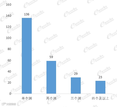 疫情的影响叠加全球地缘政治和经济的不稳定性,使得部分制造企业的供应链一度中断,企业的全球化面临新的挑战。越来越多的企业开始意识到全球多点布局的重要性。从本次调研来看, 111家企业选择跨洲布局,占比为45%,其中,跨两个大洲的企业有59家,跨三个大洲的有29家,跨四个及以上的23家。