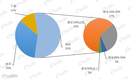 从行业来看,此次调研的14个行业中,机械装备、汽车及零部件和电子电气行业占比最高,分别为28%、16%和12%。另外,冶金化工占比8%,能源电力占比5%、航空航天占比4%、轨道交通占比4%、生命科学占比4%、家用电器占比3%、仪器仪表占比3%、船舶制造占比3%、食品饮料占比2%、纺织服装占比1%,其他行业占比7%。