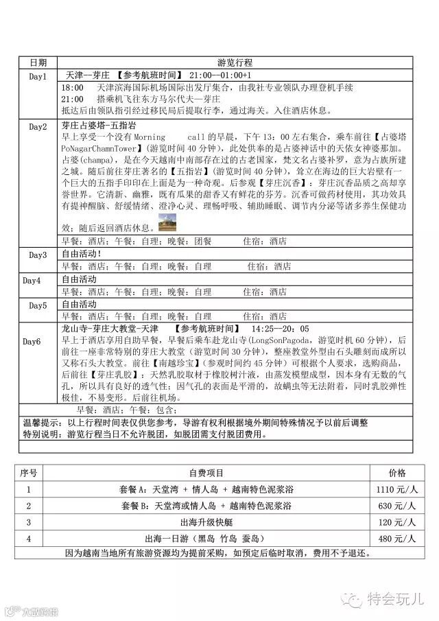 因为越南当地所有资源均为提前采购,且已预付全款,如临时脱团请签署离团期间安全协议书并支付脱团费用600元/人/天; -
