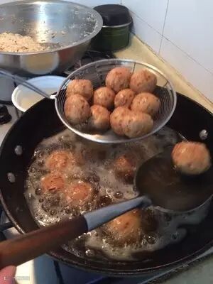 中小火炸到薯丸金黄、表皮发硬即可捞出控油上桌。