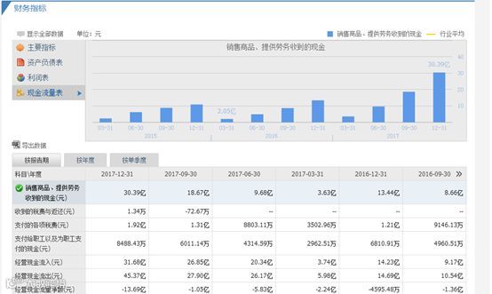 此外,财信发展现金流量表和利润表的表现同样不容乐观。在财信发展现金流量表中,经营现金流入31.68亿元,经营现金流出45.37亿元,营收以应收形式为主。2017年第四季度处置固定资产收入1.00亿元,偿还债务支付现金13.38亿元,而资产负债表上第四季度在建工程仅为558万元,财信发展已经不再以地产作为主营业务,而是转向金融市场操作。