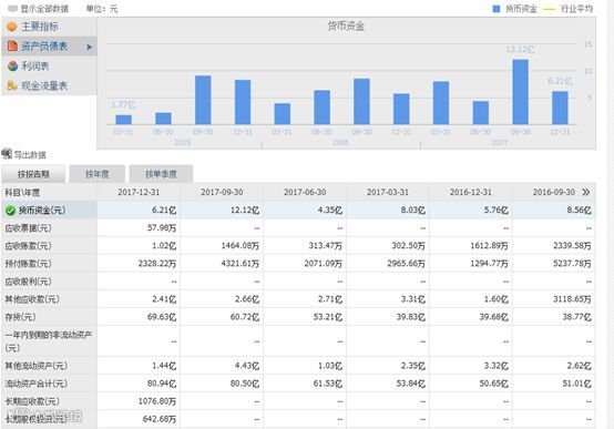 根据同花顺发布的财报,截至2017年12月31日,财信发展资产端应收类账目占比很高。其中应收账款1.02亿,其他应收款2.41亿,而公司全部货币资金不过6.21亿。此外,高达78.18%的资产负债率为财信发展的资金流状况亮起了红灯。事实上,2017年第四季度末,财信发展的应付账款高达8.6亿,长期借款达到14.92亿,财务状况已经非常脆弱。1.55的流动比率和0.21的速动比率反映了财信发展的偿债能力严重不足。整个公司面临很高的财务风险。