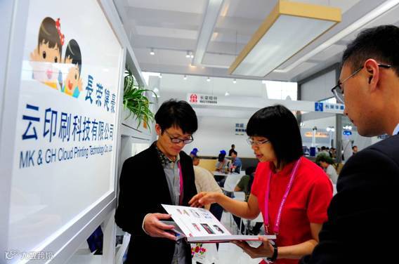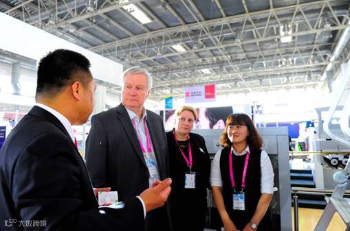 夕阳西下,展馆已经到了关闭时间,荣联汇智总经理还在接待来自美盈森的客户,为其介绍智慧印厂解决方案!