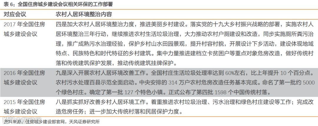 以住建部召开的全国住房城乡建设会议为例,2015年-2016年农村人居环境改善工作都放在了全年工作部署的最后一条,而2017年则放在了6条工作中的第4条,而且内容明显逐年增多,在本次会议中扩大了整体工作的内含,增加了“推进美丽乡村建设”。