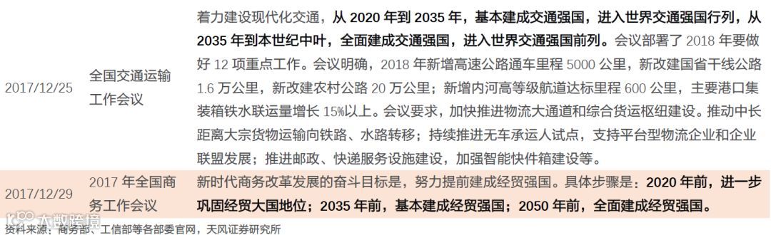 (1)工信部和交通运输部对未来工作提出了明确的量化指标,工信部对2018年规模以上工业增加值提出了量化的目标为6%左右;