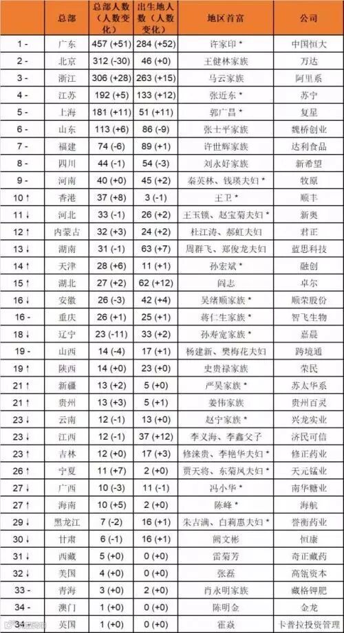 从居住地和总部所在地来看,广东是富豪最喜爱的地方之一。