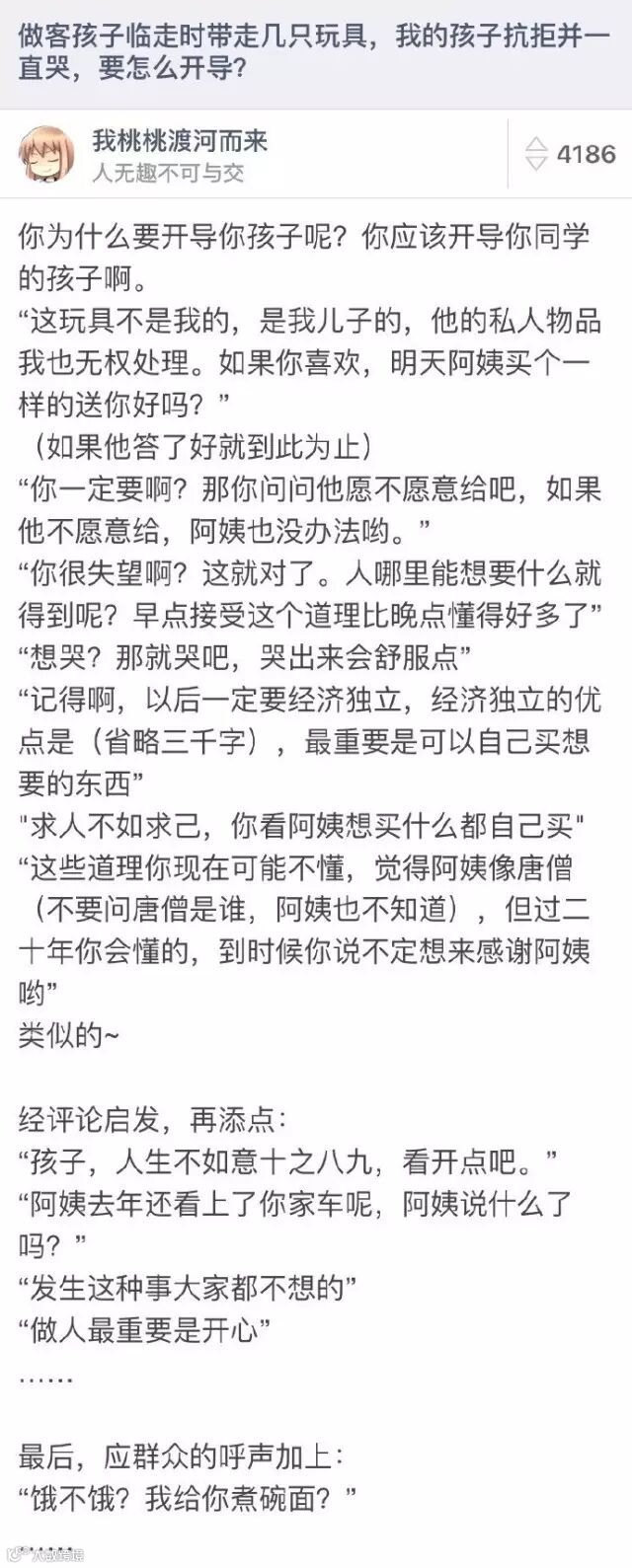 知乎:做客孩子临走时带走几只玩具,我的孩子抗拒并一直哭,要怎么开导?
