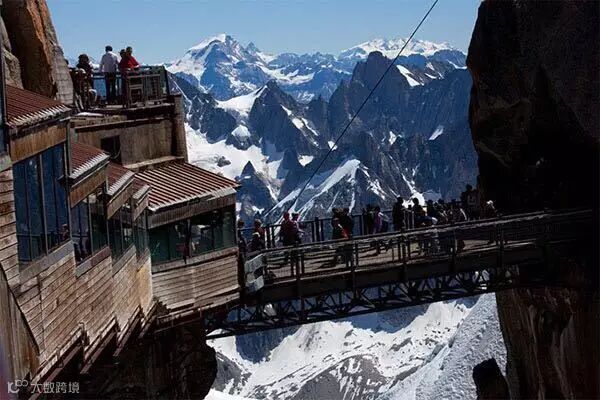 只有最勇敢的人才能站在这座海拔3482米的桥中央,欣赏阿尔卑斯山脉缀满白雪的群峰,并悠闲地喝上一杯热巧克力。因为在这美妙的一刻之前,你必须乘坐世界上最长的垂直缆车穿越 2800米的海拔差。