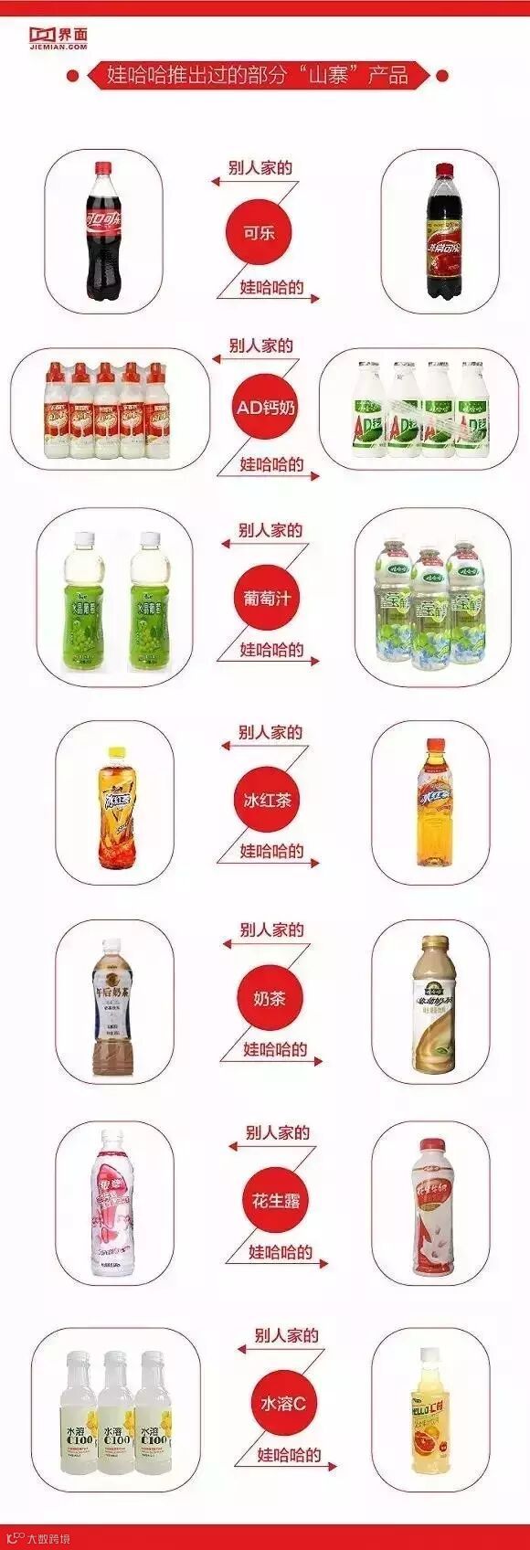 知乎上一位叫汪维的用户曾列举了娃哈哈曾经模仿的几款经典产品。他在文中调侃预测,市面上什么新饮料卖得还可以味道也还行,娃哈哈90%可能性都会出同款。因此,娃哈哈在业内还有个外号叫 “饮料界腾讯”。
