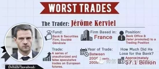 历史上最著名的亏损案注定少不了法国兴业银行。其71.6亿美元的巨额亏损,始作俑者正是当时31岁的巴黎交易员杰洛米·科维尔。