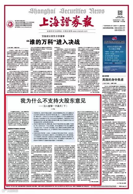 故而这次通过电话出席万科董事会并参与投票,事后无端地被拉进矛盾漩涡,还有人威胁我泄露了内幕信息,半只脚已经进监狱。我的蛮劲就又来了,天天半夜起来写文章。现在监管部门将信息披露视为头等大事。按《证券法》的规定和要求,上市公司的董事等应当保证上市公司所披露的信息真实、准确、完整。从我的文章可以看出,这次万科董事会会议公告的信息实在少得可怜。大量对公众股东和市场投资者至关重要的信息均未公布。故我当时就要求公开董事会会议记录,但大家显然意见不一。然而公司股票很快将复牌,这种对信息披露的不准确、不完整因而必然不能全面真实的情况,只会有利于少量知情者,对广大公众股东和潜在投资人极不公平。在一时激情的正义感推动下,觉得即便个人付出点代价也要打破上市公司这种普遍存在的对关键信息披露的不准确、不完整因而也很难真实的局面。这样我才选择了《上海证券报》这一指定披露信息媒体刊登了这一系列文章。