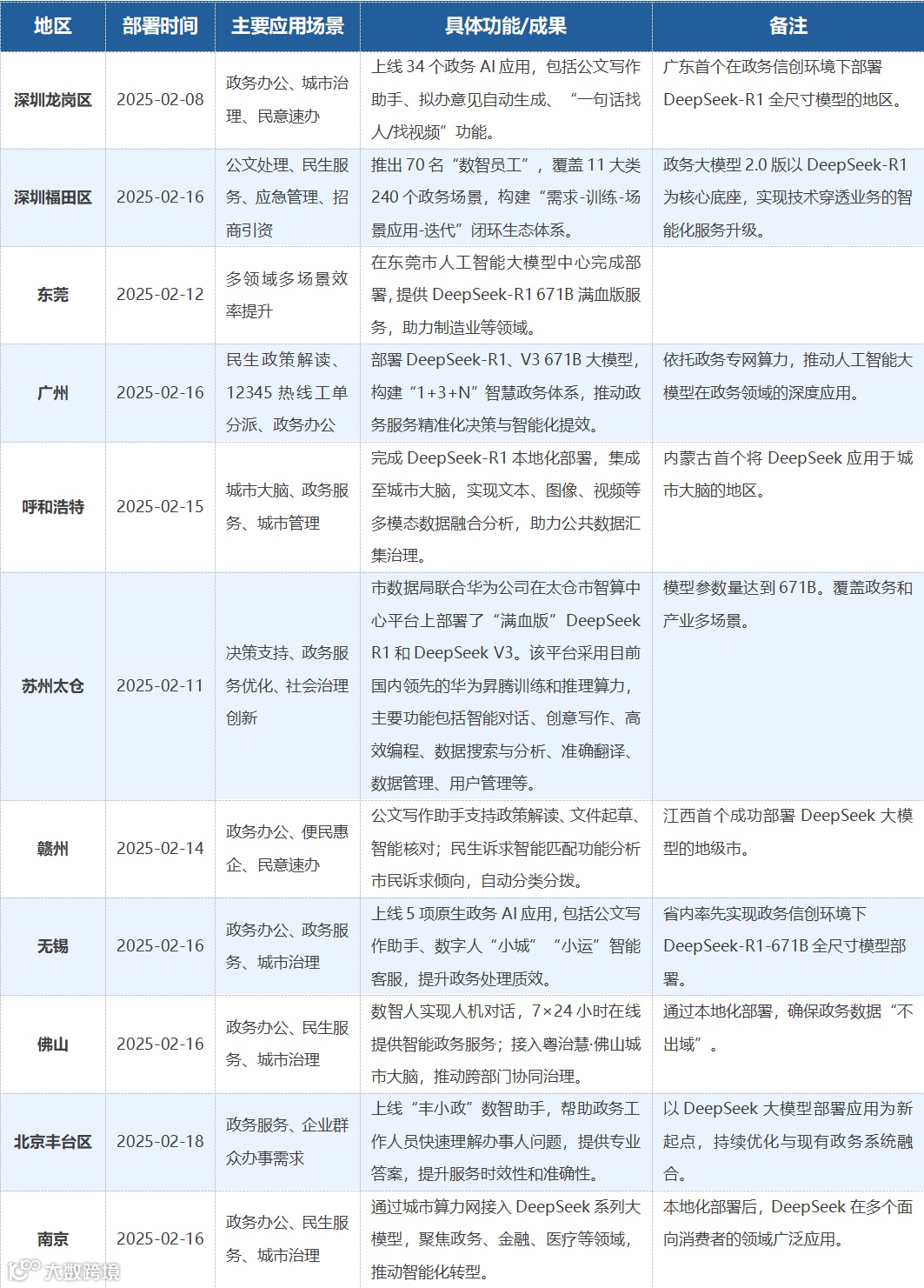 综合DeepSeek和其他公开信息统计,在深度求索公司开源R1人工智能模型后,2025年以来各地政务系统以各种方式“接入”的情况如下: