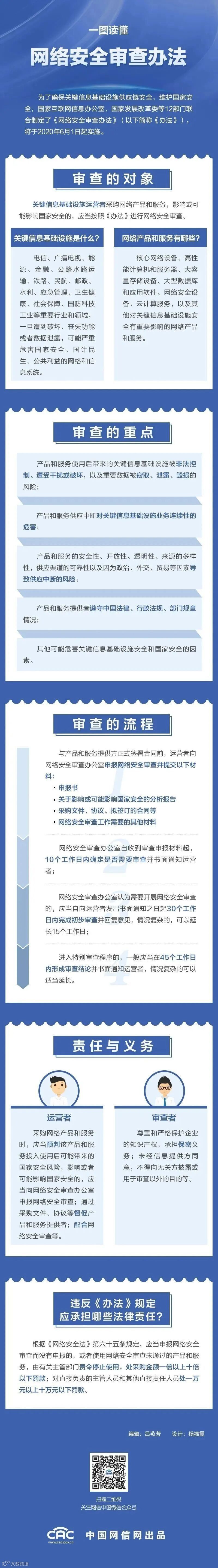 由国家互联网信息办公室、国家发展和改革委员会、工业和信息化部、公安部、国家安全部、财政部、商务部、中国人民银行、国家市场监督管理总局、国家广播电视总局、国家保密局、国家密码管理局联合制定的《网络安全审查办法》(以下简称“办法”)于6月1日起开始实施。
