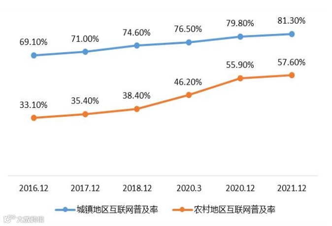 城乡地区互联网普及率
