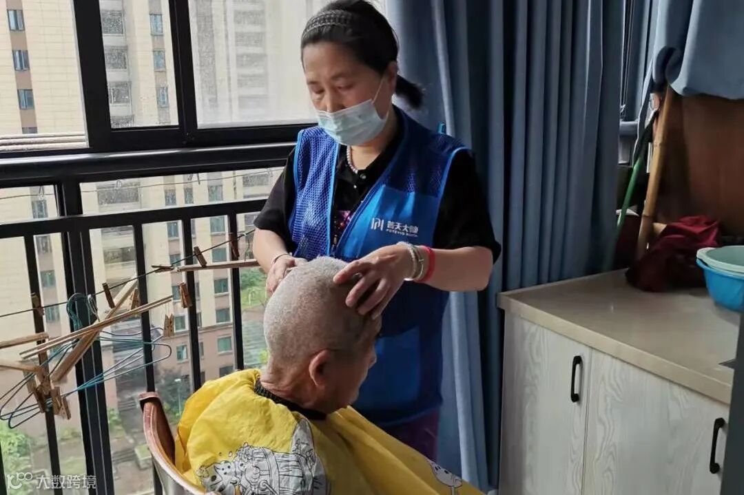 “我们年纪大了,腿脚也不方便,去一趟理发店不容易,今天你们来到我家给我理发,真的是帮了我的大忙了,谢谢你们!”应爷爷高兴地说。