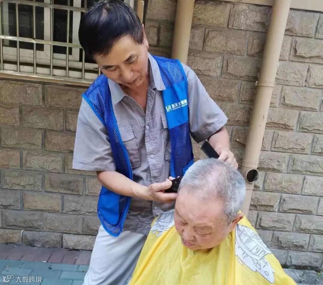 “理发师很专业,剪得很细心,剪的发型我太满意了,显得很精神,感觉整个人都清爽多了。”陆爷爷开心地说。