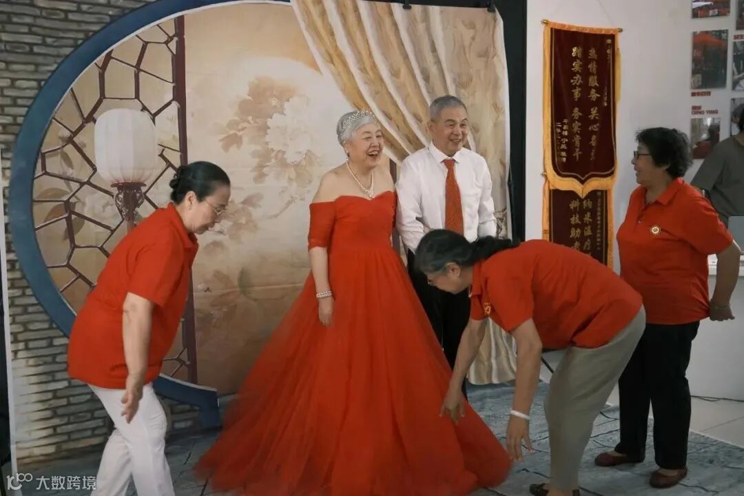 “这么多的志愿者为我们老两口服务,心里特别受感动,几位老大姐年龄也都快七十岁了,帮助我换装、化妆,由于我腿脚不好、走路困难,大家就为了我忙前忙后的,推着轮椅,太让我们过意不去了!”王红老人含着热泪对志愿者们表示感谢。