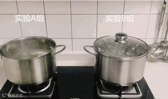 3.实验A组(左图)不盖锅盖,实验B组(右图)盖上锅盖,同时继续小火煮10分钟。