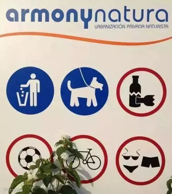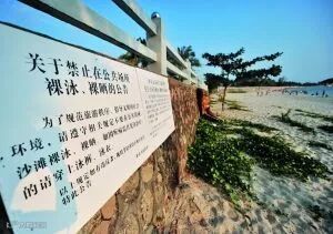 沙滩也会贴心地设立告示牌,提醒游泳者附近可能有裸体主义者出没▼