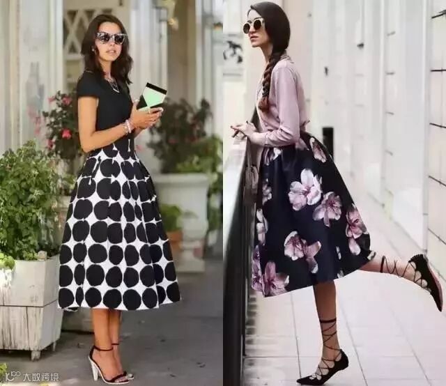 A字裙正好沿着臀部线条向下延伸,有很好的遮挡效果,直筒的铅笔裙上下宽度基本一致,所以也不会凸显臀部;圆摆的伞裙和A字裙效果一样,也是正好隐藏了大屁屁。