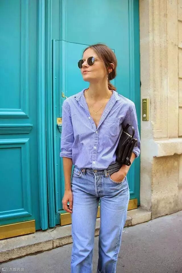 蓝白竖条纹衬衫也超级in,气质又知性▼