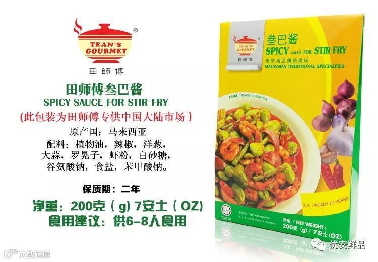 1)田师傅叁巴酱即煮酱料200克 马来西亚传统风味